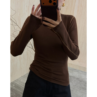 打底衫 金属标半高领细羊毛针织衫 欧货女装 新款 潮 女欧洲站2025冬装
