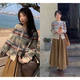 女冬内搭叠穿 毛衣开衫 一三良品小个子 复古费尔岛提花羊毛针织衫