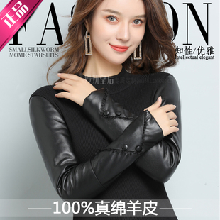 绵羊皮羽绒袖 小衫 皮袖 女冬真皮配皮草内搭加绒棉袖 加厚 打底衫 时尚