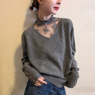 百搭内搭洋气套头针织衫 修身 花边领毛衣女秋冬打底衫 潮 花边领