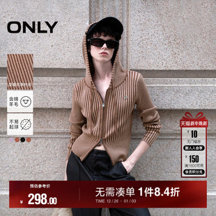 针织衫 ONLY2025冬季 通勤含绵羊毛双向拉链显瘦连帽长袖 爆款 新款
