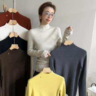 毛衣针织加厚羊绒高领纯色打底衫 女堆堆领修身 100羊毛衫 秋冬新款