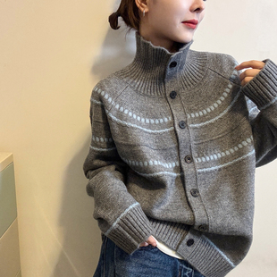 • 100%纯棉针织开衫 加厚保暖外穿 外套女可翻可立半高领2025秋冬新款