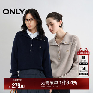 针织衫 ONLY2025冬季 型密织面料纯色长袖 知性大翻领插肩版 女 新款