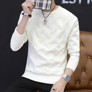 毛线衣麻花打底衫 毛衣男白色针织衫 冬季 圆领男士 加厚线衣 套头修身