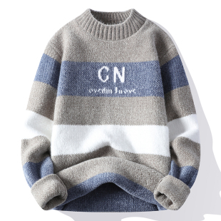 提花毛衣2025新款 针织衫 秋冬季 潮牌男装 加厚线衣内搭打底线衫 男士
