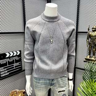 轻奢针织上衣保暖打底衫 秋冬新款 欧洲站潮牌修身 圆领毛衣男装 时尚