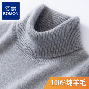 翻领针织打底羊绒衫 加厚保暖毛衣大码 男高领冬季 罗蒙100%纯羊毛衫
