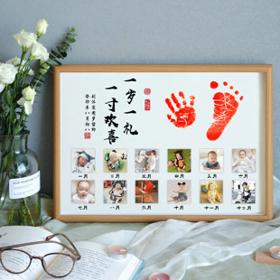 宝宝周岁手足印12个月纪念照片相框百天周岁生日满月手脚印仪式 感