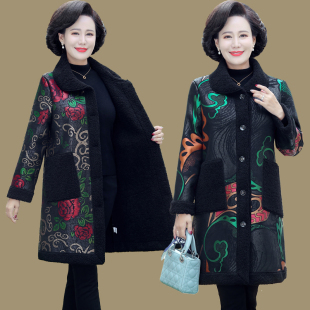 大码 中老年女装 妈妈装 外套羊羔毛加绒加厚棉衣新款 颗粒绒上衣 冬季