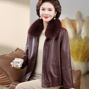 妈妈秋冬外套洋气新款 中老年人女皮衣休闲宽松中年妇女加绒皮夹克