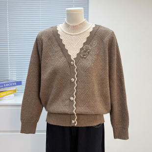 秋冬2025新款 洋气时尚 50岁中老年人女上衣服 毛衣外套开衫 妈妈秋装