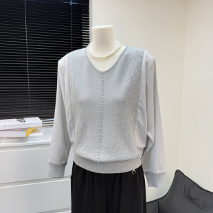 春秋季 薄款 针织衫 小衫 气质宽松上衣 女中老年人洋气拼接长袖 妈妈装