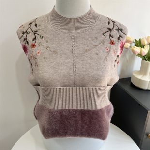 绣花中老年女秋冬半高领加绒加厚毛衣打底衫 妈妈款 羊毛衫 新款 冬装