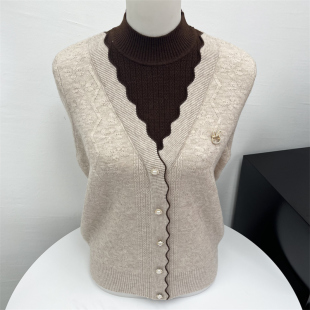 两件套假两件针织毛衣中老年套装 秋季 旗袍领妈妈装 中式 衣服 新款