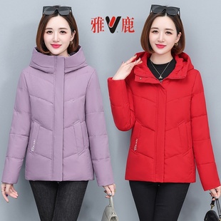 加厚保暖休闲棉袄 新款 雅鹿妈妈羽绒服短款 连帽中老年外套2025冬季