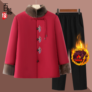 中老年人女加绒奶奶冬季 棉服70岁老太太外套棉袄妈妈喜庆棉衣新款