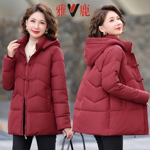 90白鸭绒妈妈羽绒服冬喜婆婆加厚红色中老年 江南故事 现货