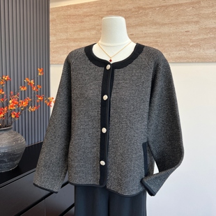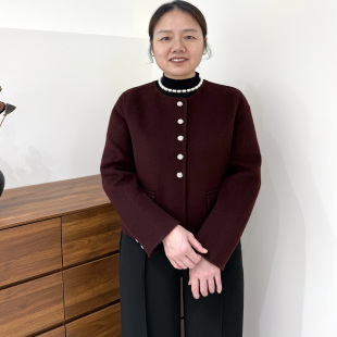 气质圆领开衫 中老年女春秋季 衣服 毛呢短外套2025新款 中年妈妈秋装