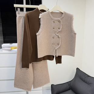 针织衫 妈妈秋装 中老年女装 2025新款 上衣三件套 半高领休闲马甲套装