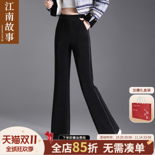 雪尼尔高腰显瘦松紧腰阔腿裤 妈妈黑色长裤 2025春 江南故事