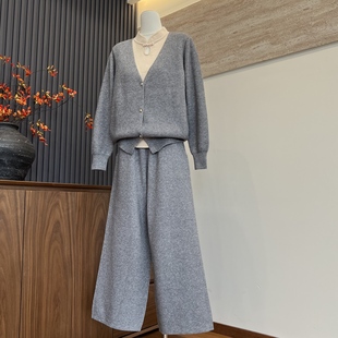 秋套装 上衣阔腿裤 中老年时尚 宽松开衫 秋冬毛衣女两件套 女装 妈妈装