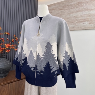 • 针织衫 妈妈装 上衣两件套时尚 女士拉链开衫 新款 中老年气质套装 秋季