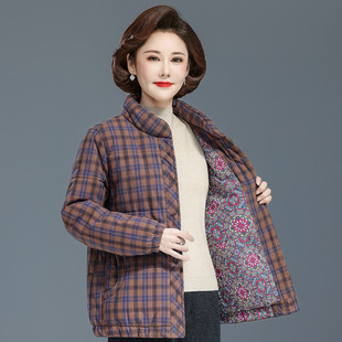 中老年女冬装 纯棉格子奶奶棉衣保暖加厚棉服妈妈上衣棉袄立领外套