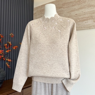 针织衫 新款 长袖 拉链时尚 毛衣外套 妈妈装 上衣中老年女士新中式 秋季