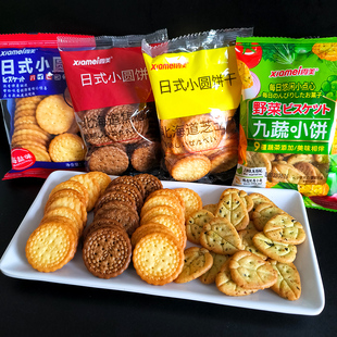 霞美日式 整箱 小圆饼干海盐芝士黑糖味九蔬糕点充饥休闲零食品包装
