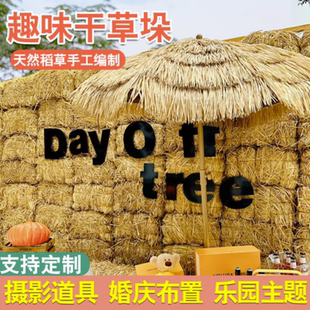草垛凳子干稻草道具圆形方形草垛拍摄道具草墩 饰 稻草垛子 草垛装