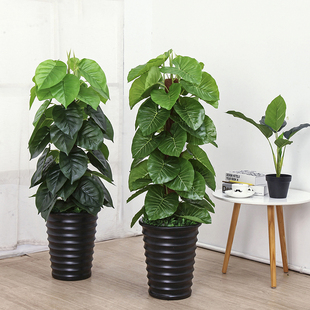 • 滴水观音仿真绿植假树室内客厅落地装 饰大叶仿真植物盆景塑料假花