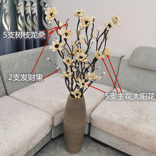 仿真花干枝假花玉米皮花叶脉干花客厅落地橱窗玄关隔断装 饰花套装