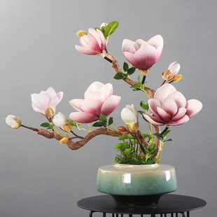 饰新中式 客厅摆件装 插花 玉兰假花仿真花套装 仿真花高档2020新款
