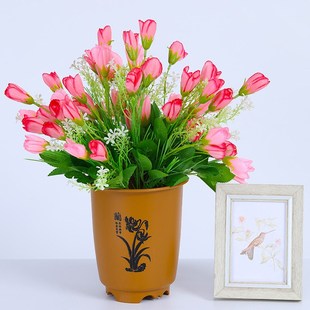 仿真花套装 饰摆设 摆件郁金香假花绢花塑料花家居客厅茶几电视柜装