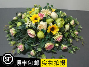 婚礼活动花艺套装 仿真花艺花排舞台背景挂花路引花堆庆典迎宾花卉