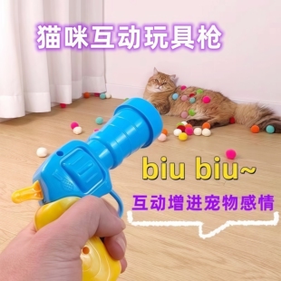 猫玩具毛球绒球发射枪自嗨解闷静音无声毛绒球弹力耐咬猫咪逗猫棒