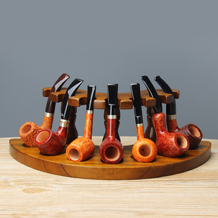 收藏展示支架配件 烟斗座男士 木香烟斗架五位实木罗马式 半圆型立式