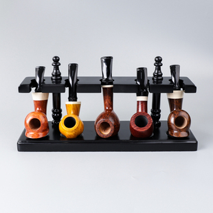 烟斗架五位罗马式 木香草丝烟斗座收藏展示支架配件 半圆型实木立式