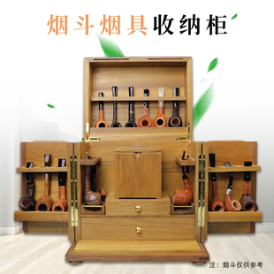 定制实木烟斗架多功能收藏黑胡桃柜收纳展示18位烟斗座烟草保湿 罐