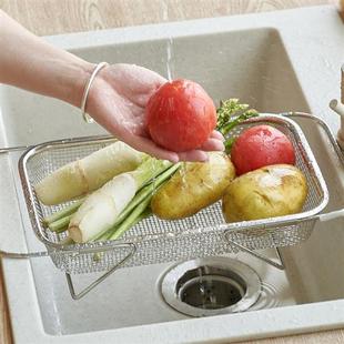 肆月水槽可伸缩沥水篮子家用厨房洗菜盆淋水脱水篮不锈钢水果筛子