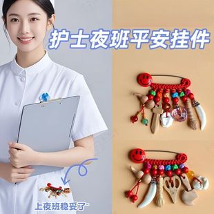 护士夜班值班神器平安挂件夜班无事桃木猪惊骨狗牙红绳编别针佩戴