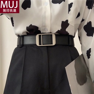 饰配连衣裙子牛仔裤 装 带潮 韩版 腰带女设计感真皮牛皮细宽皮带时尚