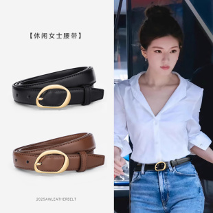 皮带女真皮纯头层牛皮休闲百搭黑色牛仔裤 带细简约腰带配裙ins风