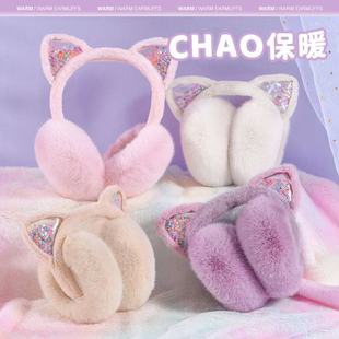 可爱小猫耳罩儿童冬季 保暖加绒可折叠仿兔毛加厚女童护耳暖捂耳套