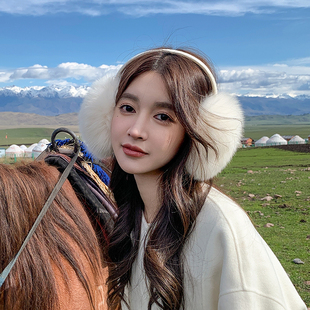 东北旅游可爱长毛茸耳罩白色防寒冬季 护耳套女 骑行保暖防风头戴式