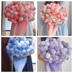 新款 梦幻渐变玫瑰花毯手工diy编织毛线花束毯子材料包送女友礼物