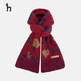 哈吉斯船长氛围感撞色爱心围巾女秋冬加厚保暖情侣款 百搭针织围脖