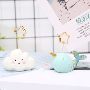 速发创意可爱举卡片小摆件夹公室桌面立式 展言夹便签夹工位名片办
