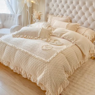 冬季 奶油风加厚雕花牛奶绒四件套公主风双面毛绒被套床裙高级床品